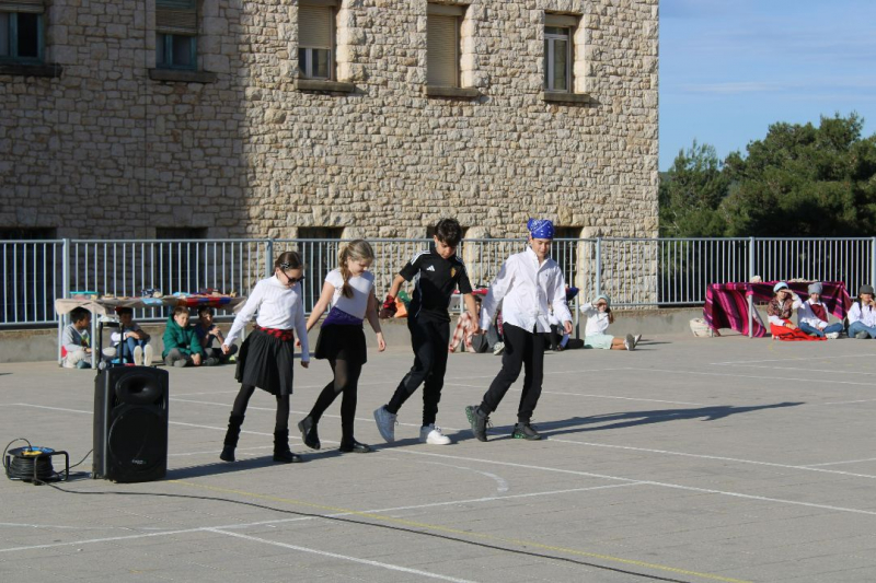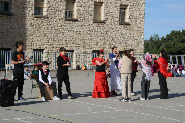Aquesta part més teòrica i de cerca d’informació ha donat pas a l’activitat en família que s’ha viscut al pati de l’escola aquest divendres dia 20. Les famílies han acompanyat els seus fills i filles en un moment molt especial, el de demostrar tot el que han après al llarg d’aquest Neuroambient. Cada grup ha preparat una petita mostra de la regió, amb presentacions, menjar i begudes típiques. Les famílies, ben atentes, han escoltat les curiositats que els alumnes els han explicat. I, per acabar, han gaudit d’una representació que cada grup ha preparat, amb balls, cançons i escenes teatralitzades per posar el punt final al Neuroambient.
